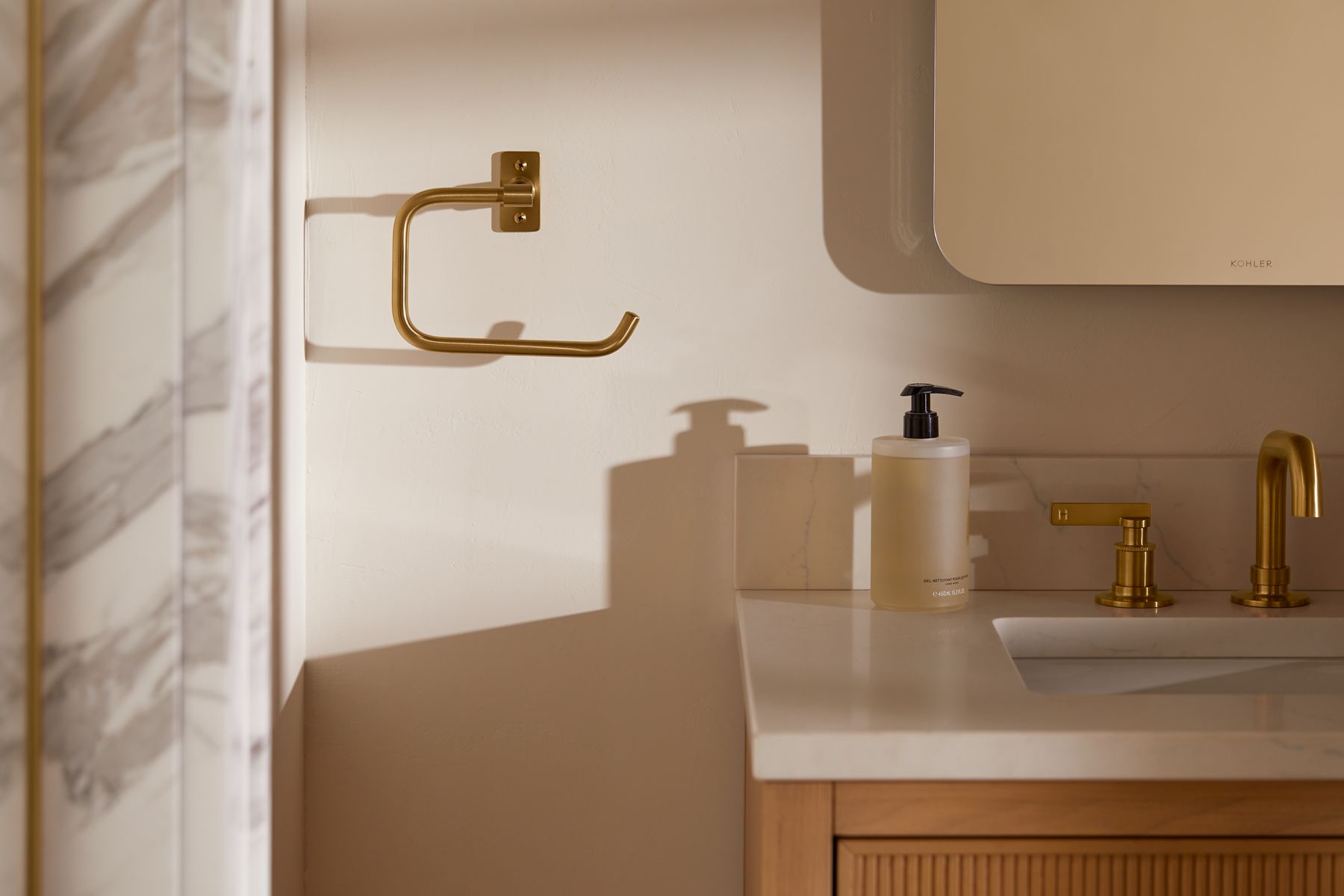 Drawing inspiration from the archives, the Castia bathroom faucet and accessory collection from Kohler x Studio McGee combines classic and modern influences in a timeless expression for the home. Crafted with meticulous attention to detail, the bathroom accessories showcase stacked connection points in a subtle homage to the raw beauty of pipe fittings. Ever versatile, the Castia collection effortlessly harmonizes with a variety of environments.
