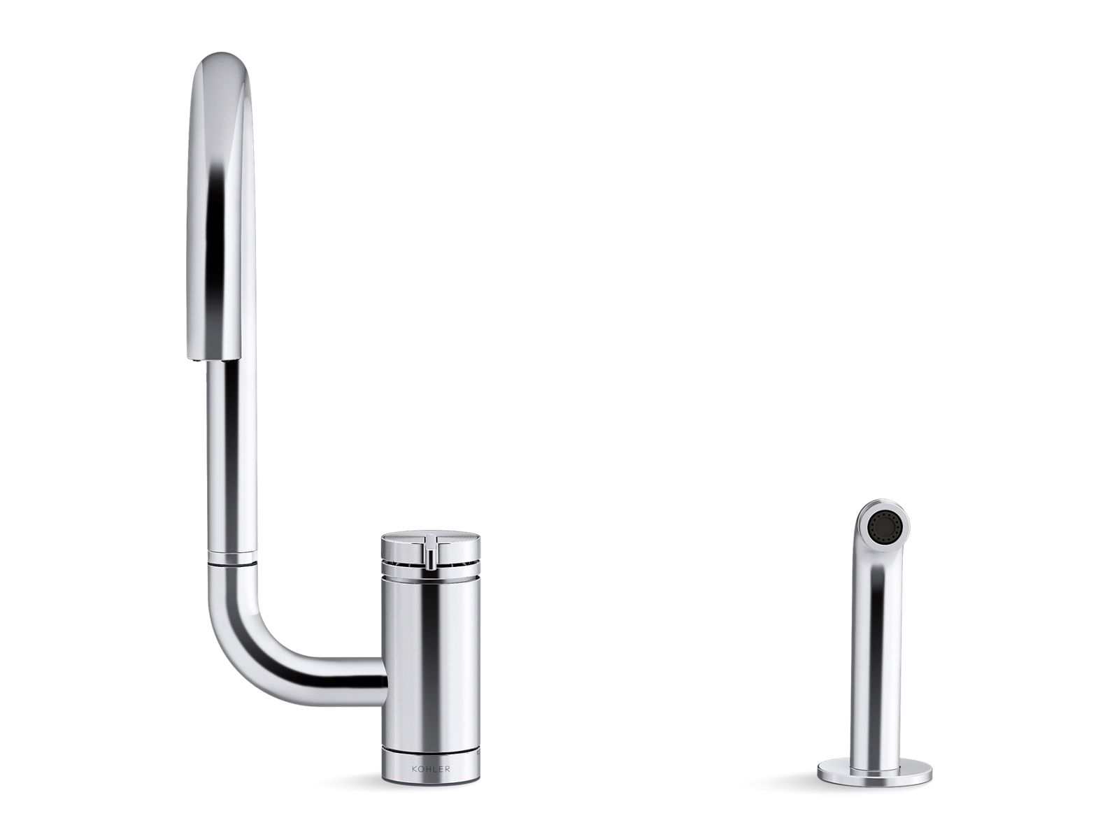 Sleek and minimalist, the Components collection exudes calm sophistication. Strong, confident lines create bold and distinctive silhouettes accentuated by refined design details. The Components single-handle extended-reach kitchen sink faucet melds this very style with a unique two-function aerator to supply two spray functions with a simple twist of the end of the spout, and it also includes a convenient coordinating side sprayer.