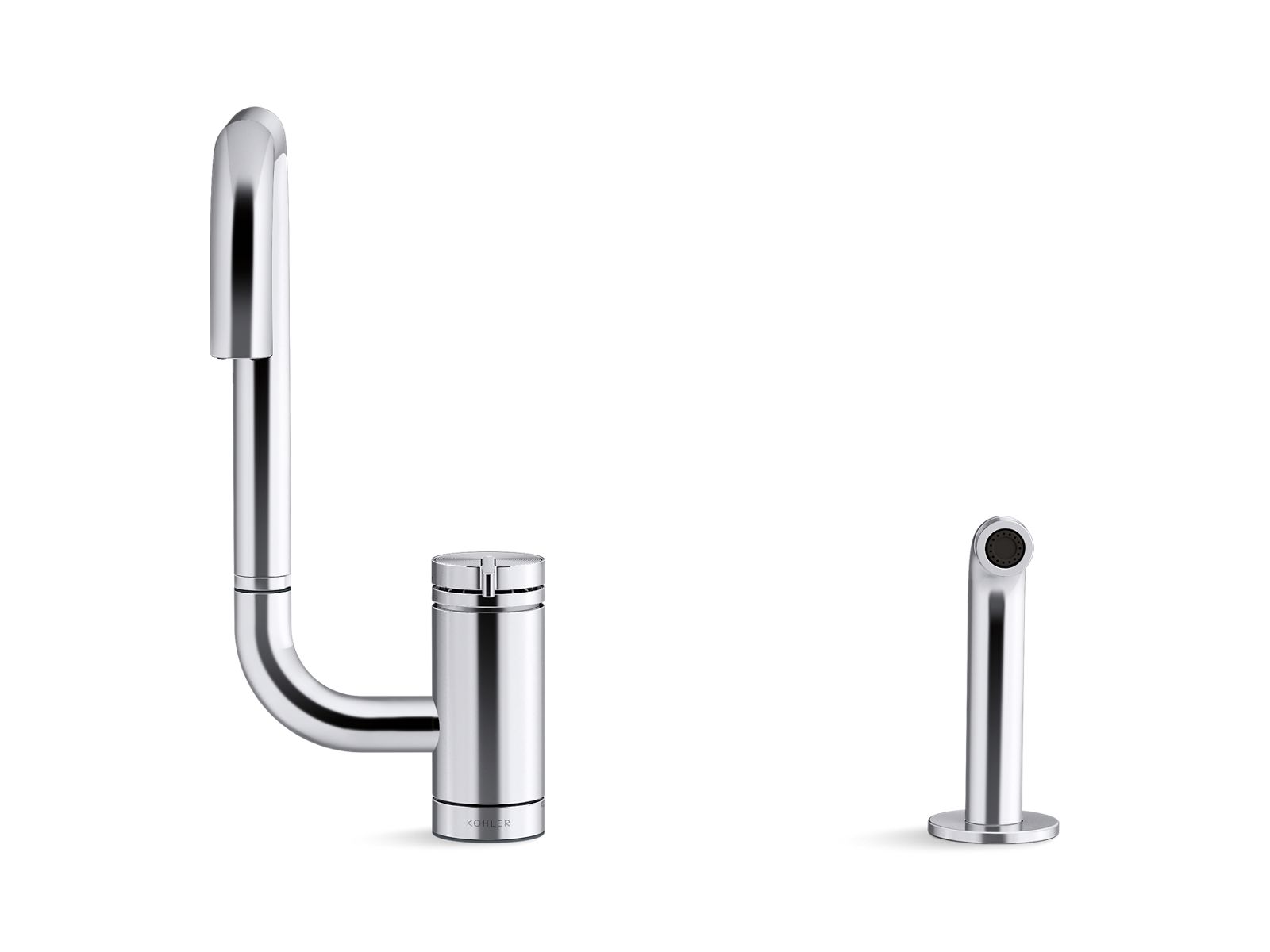 Sleek and minimalist, the Components collection exudes calm sophistication. Strong, confident lines create bold and distinctive silhouettes accentuated by refined design details. The Components single-handle kitchen sink faucet melds this very style with a unique two-function aerator to supply two spray functions with a simple twist of the end of the spout, and it also includes a convenient coordinating side sprayer.